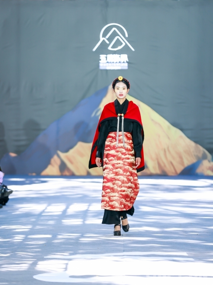 記者在現場了解到,月浮系列靈感來源于日喀則市亞東縣上亞東鄉、吉隆縣和謝通門縣的傳統服飾,以黑紅兩種基調為主。紅色代表智慧熱情,黑色象征著莊嚴與敬畏。云撫系列靈感來源于日喀則市薩迦縣、康馬縣和定日縣的傳統服飾,以大地色調為主,將自然的美妙展現在服飾創作之中。充滿溫暖和沉穩的氛圍大地色,彰顯出人類與自然的和諧共處。其他系列也各自展現了日喀則的特色和魅力。