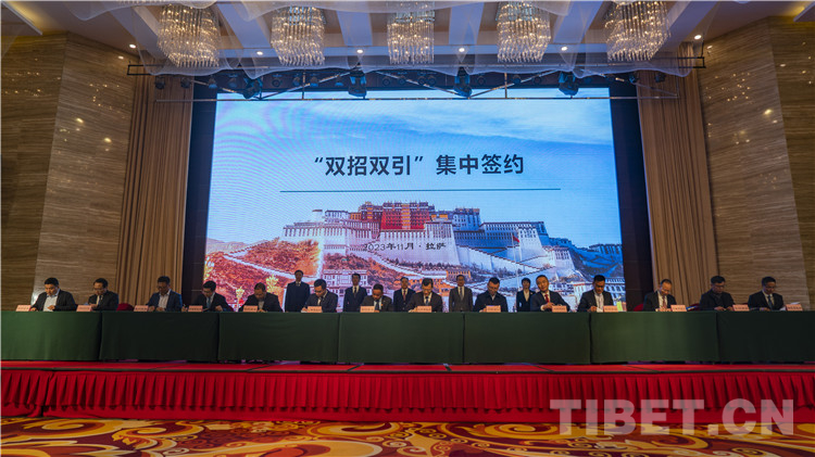 中國西藏網訊 11月14日,西藏自治區“雙招雙引”(援藏招商引資、招才引智)集中簽約儀式在拉薩市舉行。各地(市)人民政府(行署)有關負責同志與引進企業代表、區內有關用人單位負責同志與專家人才代表分別進行簽約。此次“雙招雙引”簽約儀式,共簽約援藏招商引資項目20個,協議資金103.08億元,涉及清潔能源、生物科技、特色農牧、綠色工業、現代服務等領域,21名引進專家人才代表參加現場簽約。