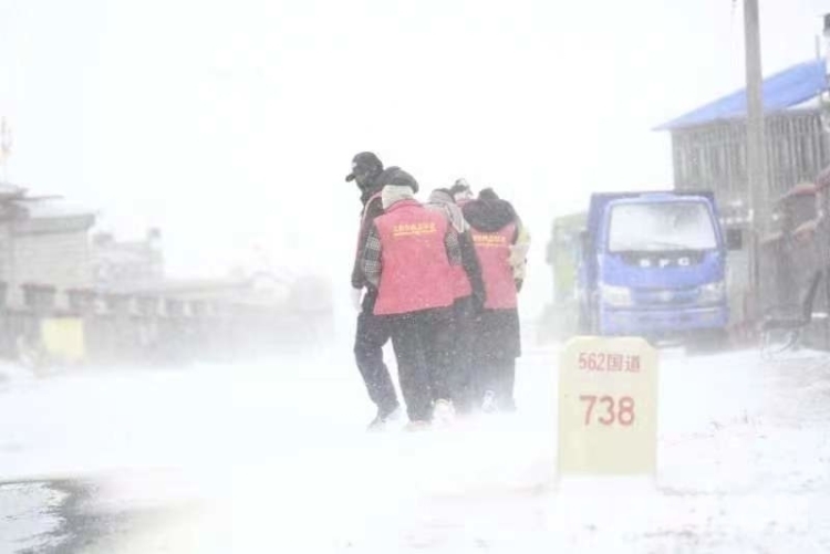 中國西藏網訊 近日,西藏氣象局連續發布大風和暴雪黃色預警。22日,受西風槽影響日喀則市亞東縣帕里鎮范圍降暴雪,G562部分道路積雪厚度達20余厘米。降雪降溫對交通影響較大,為守護轄區內道路安全,帕里鎮四社區駐村工作隊組織12名45歲以下黨員身著紅色志愿服,利用社區愛心驛站配合執勤交警,以輪班形式對轄區內國道沿線進行不間斷巡邏,重點對急彎陡坡、橋面、風吹雪等路段進行不間斷巡查,警民協作確保道路安全暢通。