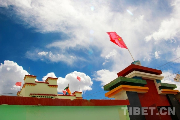 在阿里,那抹鮮艷的中國紅總是最動人的,有國旗的地方就是中國,特別是身處邊境,迎風飄揚的五星紅旗令自豪感與責任感油然而生。這些年來,“做神圣國土的守護者,做幸福家園的建設者”的理念深入人心,邊境居民的生活越來越便利富足,固邊興邊富民的宏闊圖卷令阿里的色彩更加豐富更加濃郁。圖為邊境小康村西藏自治區阿里地區日土縣多瑪鄉烏江村里的民居 攝影:劉莉(中國西藏網 記者/劉莉 噶哇扎西 陳衛國)