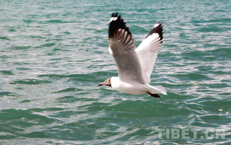 圖為翱翔在班公湖上的棕頭鷗 攝影:劉莉
