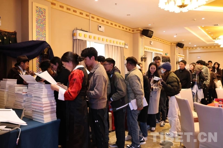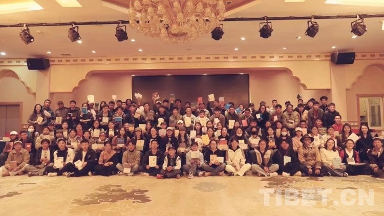 活動最后,由主辦方幫錦嘎瓊讀書會為現場參與人員準備了藏漢英三種語言文字相關書籍,內容涉及歷史、文學、哲學,以及流行暢銷書等。現場讀書愛好者們個個“眼饞”,你推我擠著往前排隊,生怕錯過自己心儀的書。工作人員一一對照表格,為他們贈送書籍并要求填寫閱讀承諾書。