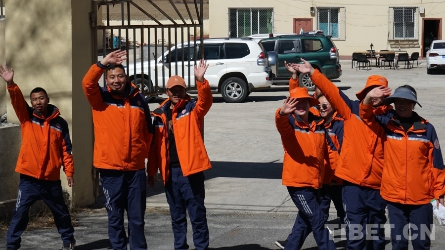 圖為臨行前,養護職工們向川藏線采訪組揮手致意 攝影:張宇