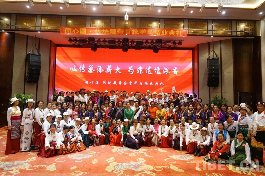 中國西藏網訊 5月9日,由同心圓傳統藏舞會堂舉辦的“為傳承添薪火 為非遺增濃香”傳統藏舞首批學員結業典禮在陜西西安舉行。22名學友經過一年多的辛勤努力終于迎來了結業典禮,同時現場還為9名優秀學員頒發推廣人證書。