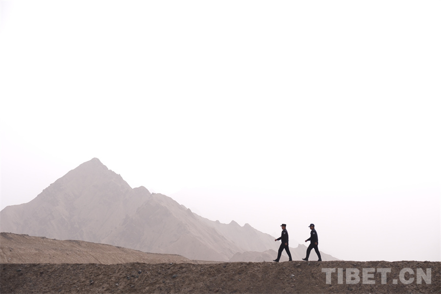 圖為巍巍昆侖,莽莽戈壁,天路衛士在巡線路上