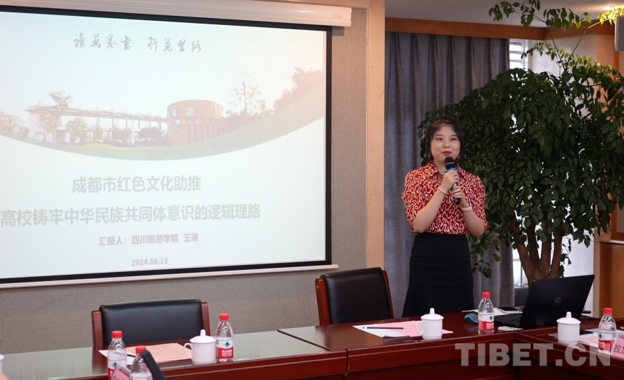 四川旅游學院四川省鑄牢中華民族共同體意識基地辦公室主任王瑞介紹了成都市豐富的紅色文化資源,從內在關聯和實踐路徑兩個層面探討了紅色文化與中華民族共同體意識的契合度,以及助推高校鑄牢中華民族共同體意識的方式方法。