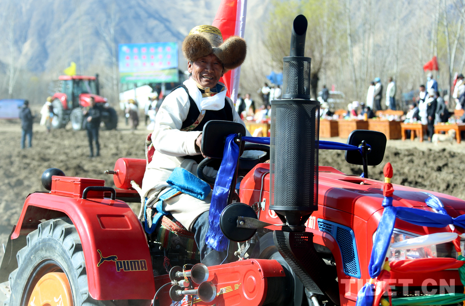 資料圖:拉薩市曲水縣農民群眾耕下2024年“第一犁”