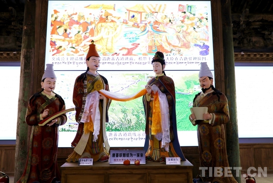 圖為宏覺寺鑄牢中華民族共同體意識體驗館內“唐蕃聯姻”塑像 攝影:王茜