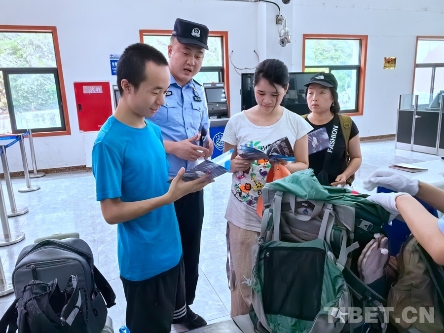 圖為邊檢站民警在樟木口岸為過往旅客分發禁毒知識宣傳單 攝影:軒紅偉