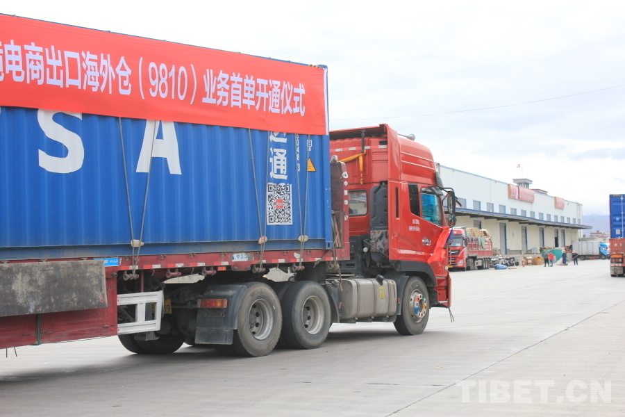 圖為中國(拉薩)跨境電子商務綜合試驗區跨境電商出口海外倉(9810)業務首單貨車向位于尼泊爾加德滿都市的海外倉發車 攝影:張曉琪