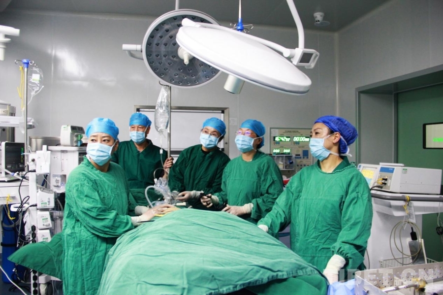 圖為航空總醫院婦科主任余立群(右一)為患者手術 攝影:劉莉
