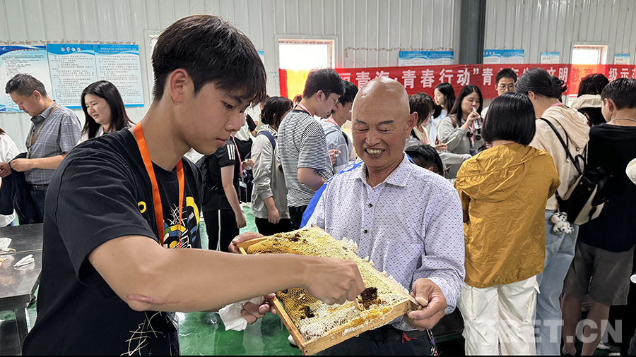 來自香港仁濟醫院第二中學的朱紫賢平時喜歡在食物中加入蜜糖,“但直到今天,我才對于蜜蜂采蜜有了進一步的認識。”她克服了對蜜蜂的恐懼,近距離觀察到蜜蜂有條不紊的工作,也初步了解了蜂蜜的品質會隨著海拔高度的增加而提升,以及蜂蜜的味道會因蜜源地域或鮮花季節的不同而產生變化。“青海屬于高海拔地區,我認為中華蜜蜂所采的蜜露營養價值很高很珍貴,很高興今天學到這些蜂文化知識。”