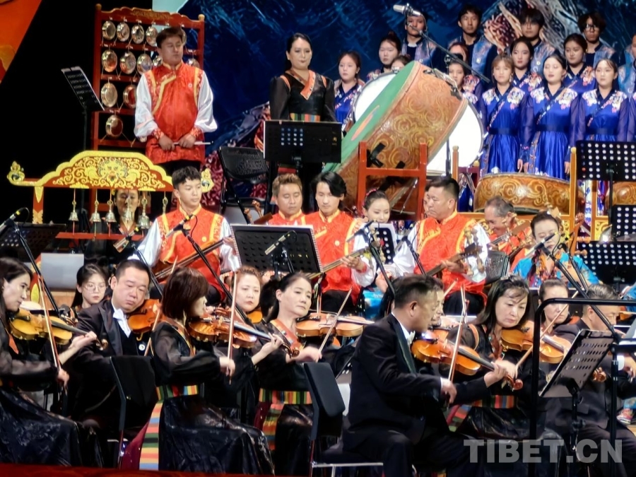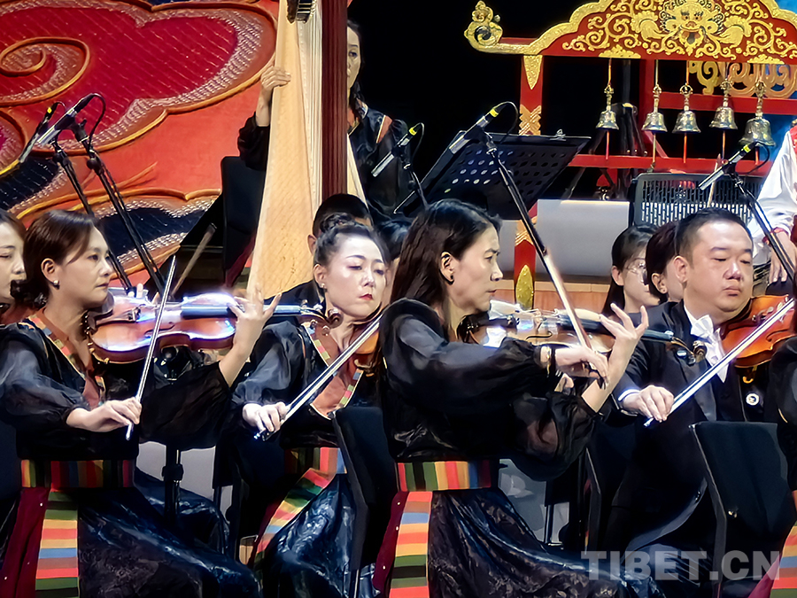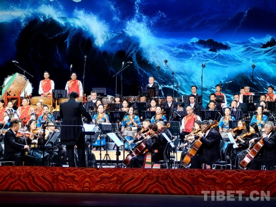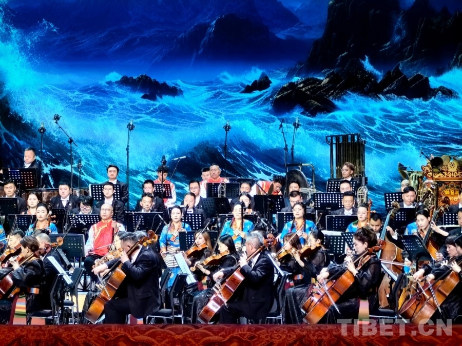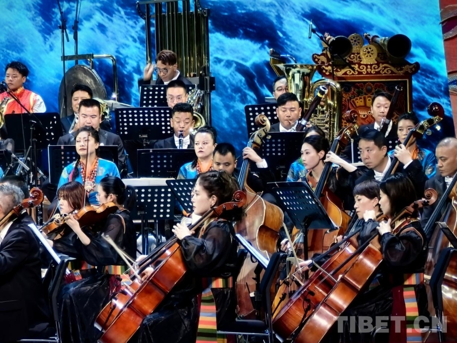 中國西藏網訊 7月12日晚,第二屆西藏文化藝術節在西藏大劇院開幕。來自西藏自治區歌舞團、甘肅省歌劇院、西藏自治區藏劇團、西藏自治區話劇團、西藏大學藝術學院、拉薩市歌舞團(曲藝團)、阿里地區象雄藝術團的藝術家,為嘉賓和觀眾奉上了一場精彩的民族管弦樂《喜瑪拉雅》。