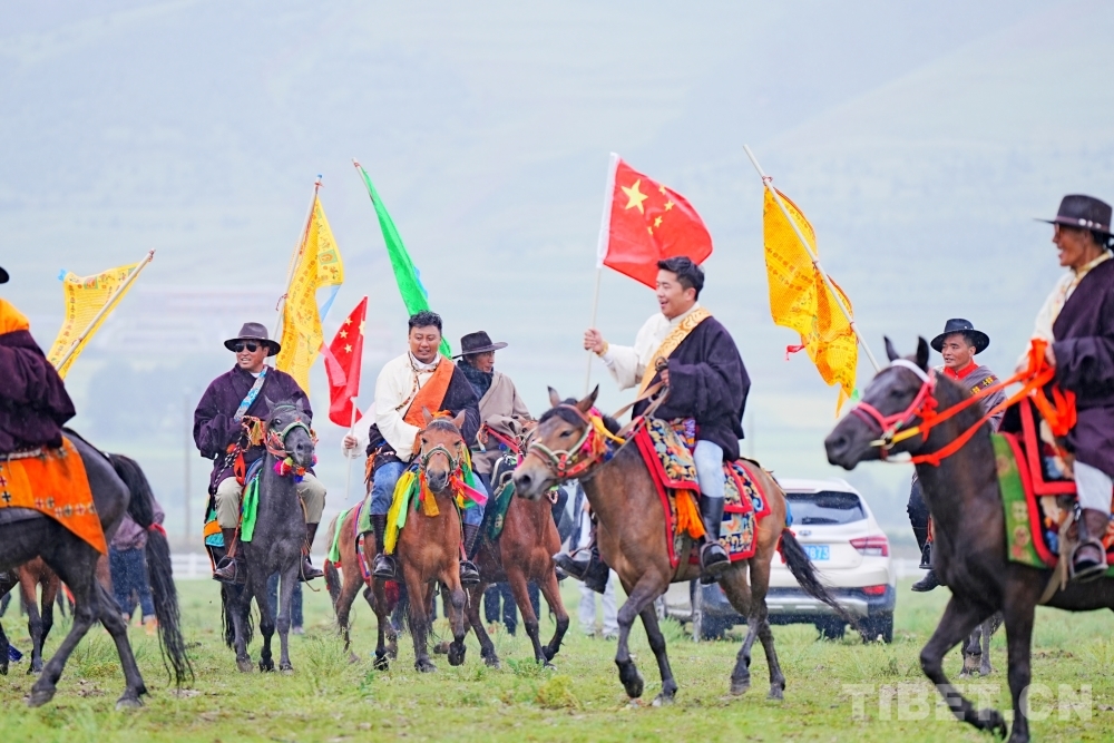 一場傳統(tǒng)的祈福儀式拉開活動的序幕。身著盛裝的騎手擎著彩旗,策馬轉(zhuǎn)繞祈福的煨桑臺,共同祝愿祖國繁榮昌盛,祝福家鄉(xiāng)安定祥和,各族人民團(tuán)結(jié)進(jìn)步。少兒服飾隊(duì)和300名當(dāng)?shù)厝罕娛峙豕_(dá)悉數(shù)亮相在舞臺前,向四方來客表示誠摯歡迎。“賽馬”“吉祥大鍋莊”等民族歌舞精彩上演,游客也加入其中跳起團(tuán)結(jié)鍋莊,盡享盛夏安巴之樂。