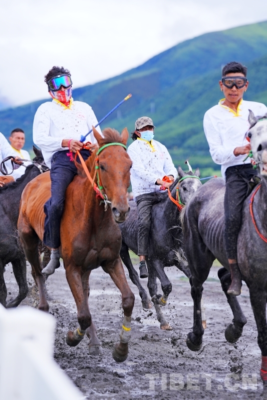 賽馬場上,開賽鈴響后,騎手們駕馭著馬匹如離弦之箭沖出起點(diǎn),伴隨著騎手的吆喝聲,策馬揚(yáng)鞭,駿馬奔騰,你追我趕,賽道塵土飛揚(yáng),馬背上的速度與激情精彩上演。賽馬場外,大象拔河、朵加(抱石頭)、客有曲通(馬鞍倒立)等民俗活動你方唱罷我登場,吶喊聲、助威聲此起彼伏。