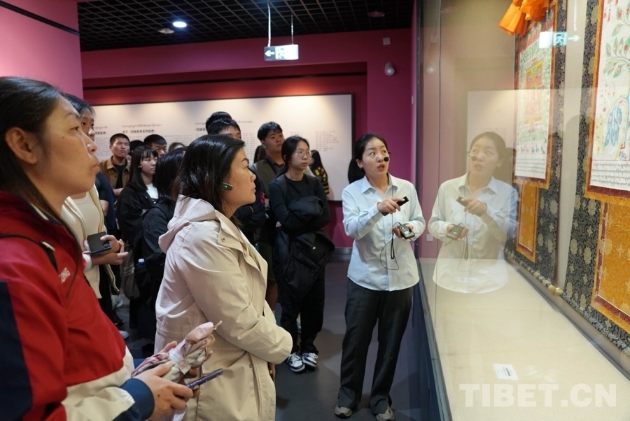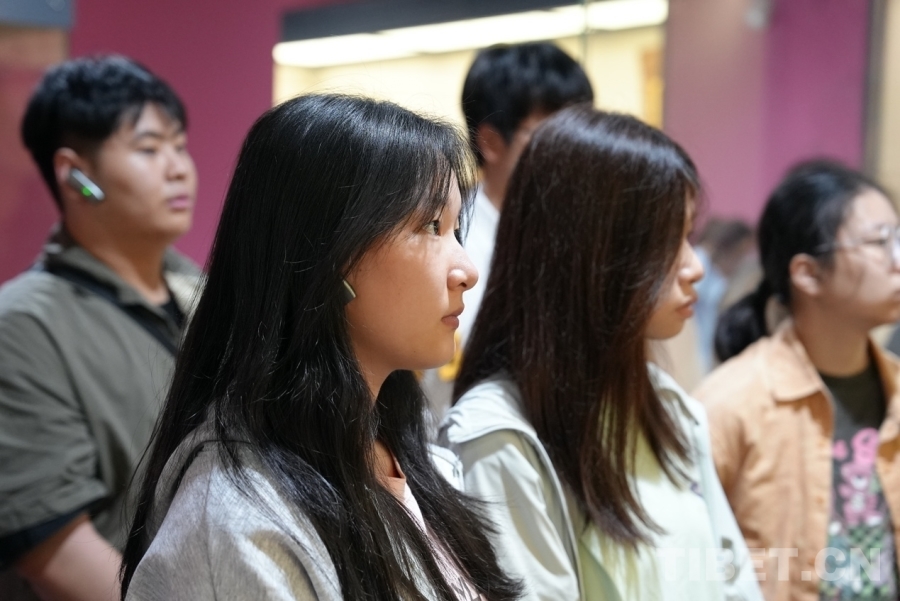 在熱貢藝術博物館中,豐富的藏品如同歷史的畫卷,一一展現在大家眼前。從古老的唐卡到精美的木雕,再到獨具特色的堆繡和栩栩如生的泥塑,專業的講解員細致入微地介紹著每一件展品的藝術特點、文化價值,使參與者們沉浸在熱貢藝術的魅力之中。
