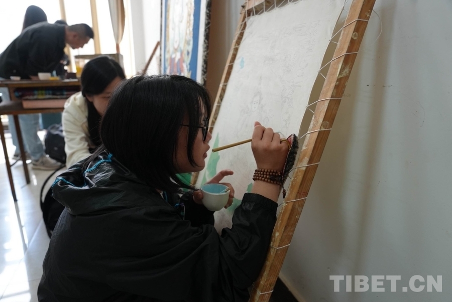 在熱貢畫院,師生們親眼目睹了畫師們的創作過程。畫師們全神貫注地繪制著唐卡,一筆一畫間盡顯對藝術的執著與熱愛。他們精湛的技藝和嚴謹的態度讓大家深受觸動,更深刻地體會到了熱貢藝術的博大精深。
