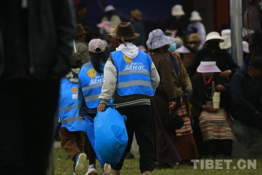 環保小衛士們不怕臟不怕累,身著藍色小馬甲,手持清掃工具和垃圾袋“地毯式搜撿”,如同“藍精靈”在人群中穿梭,用實際行動感染著現場活動的所有參與者。在大家的共同努力下,經過三個多小時的辛勤勞動,望果節現場的衛生得到了明顯的改善。
