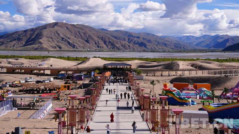 作為“藏文化的發(fā)祥地”,山南以其特色的自然風(fēng)貌和深厚的文化積淀,成為此次藝術(shù)季的最佳舞臺(tái)。扎囊縣境內(nèi)的沙丘藝術(shù)公園,作為西藏首個(gè)國家沙漠公園,在此次活動(dòng)中巧妙地將沙丘景觀與“藏源”文化相結(jié)合,最終打造集藝術(shù)展覽、服裝大秀、創(chuàng)意集市、音樂現(xiàn)場于一體的綜合性藝術(shù)季。