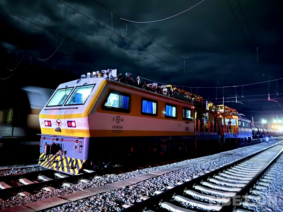 23時00分,軌道車穩穩停靠,“天窗”作業命令下達。中國鐵路青藏集團有限公司拉薩基礎設施段供電維修技術中心拉薩南接觸網維修隊工長李積王帶著7名工友走下接觸網作業車,驗電、連接地線端、接掛地線……一系列操作一氣呵成。隨即,現場負責人拉加和工友們依次登上距離地面6米高的作業平臺上,穿梭于接觸網線索之間,猶如凌空“舞者”。