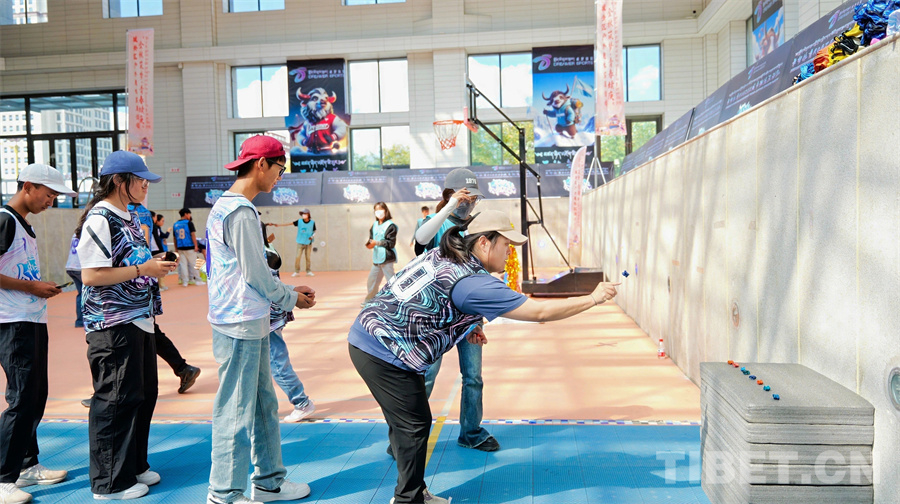 “投壺是中國古代宴飲時做的一種投擲游戲,也是一種禮儀。愛看古裝劇的人應該都在影視作品里看過,這是一個由游戲者輪流站在離壺一定距離的地方,用手把箭投向壺中并計算得分的游戲。”“打牛角和阿久(羊拐)是一項流傳至今的西藏古老民間傳統體育活動,具有很強的娛樂性、趣味性和技巧性,能夠鍛煉身體,還能給我們帶來參與其中的快樂……”每項活動開啟前,晉美次旦向現場參與人員一一講解這項運動的由來以及發展現狀,大家聽得十分認真,隨后又積極參加各項活動。活動現場熱鬧非凡、歡聲笑語不斷,營造了濃厚的健身氛圍。
