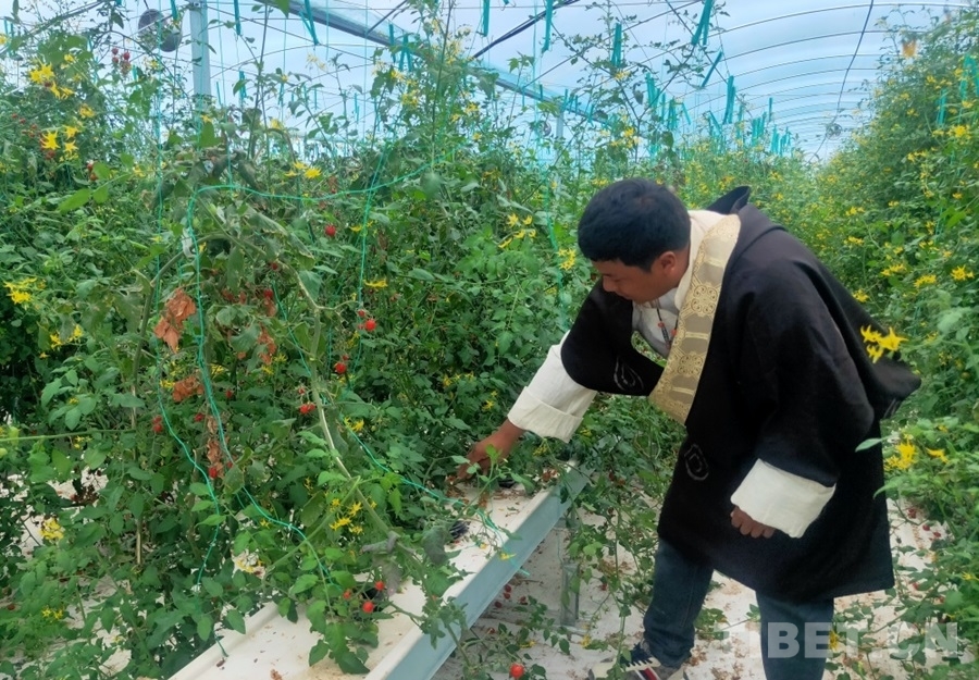 中國西藏網訊 “我今年34歲,是村里的大學生,從去年開始在這里工作。”江永澤仁來自昌都市八宿縣旺比村,是八宿縣物聯網高效植物工廠的生產管理員。“我們生產的圣女果主要在縣里銷售,收益很好。這邊固定員工有三位大學生和兩位旺比村村民。果子采摘的時候,忙不過來,我們還需要再多找些村民來幫忙,每天能給到160元的工資。”談起自己所在的植物工廠,江永澤仁語氣中的滿意和驕傲溢于言表。“明年我們還要計劃種植藍莓呢,已經有同事到山南去參加相關培訓了。”