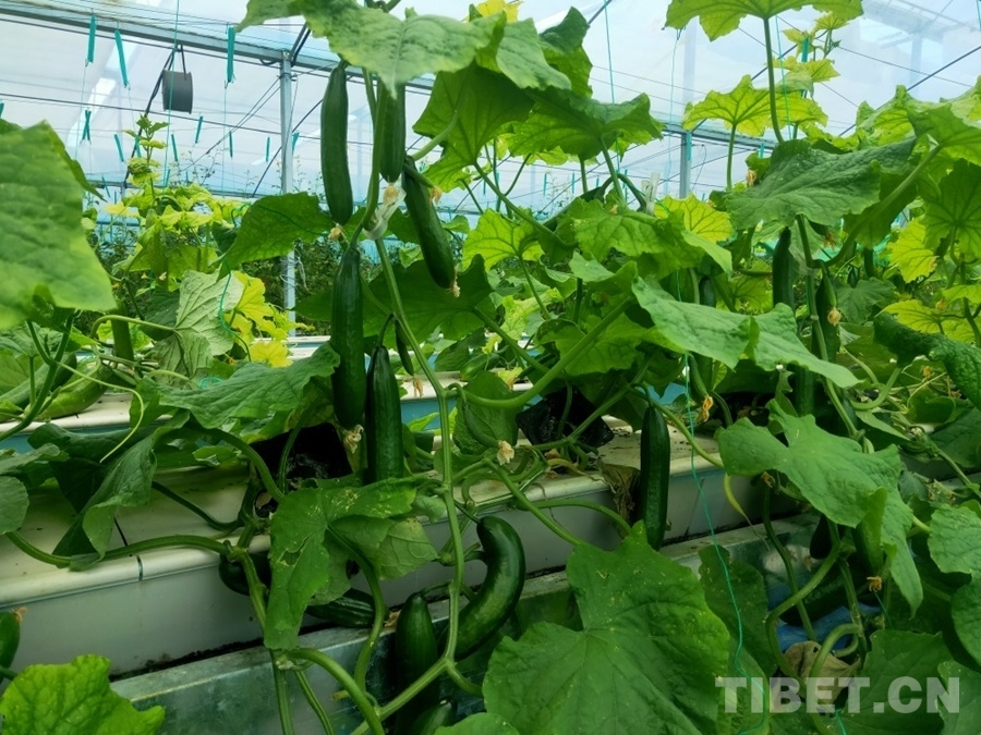 圖為八宿縣物聯網高效植物工廠種植的黃瓜 攝影:周晴晴
