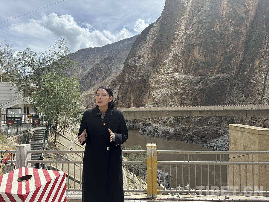 圖為八宿縣文旅推介員達瓦卓瑪介紹怒江大橋相關情況 攝影:王妍丹
