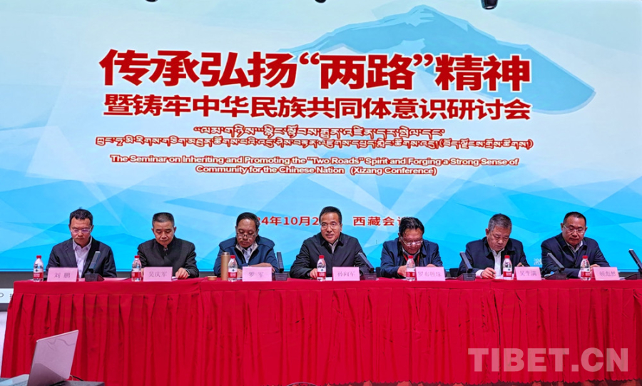 中國西藏網訊 10月24日,傳承弘揚“兩路”精神暨鑄牢中華民族共同體意識研討會在西藏自治區拉薩市開幕。此次研討會由中國西藏信息中心、西藏延安精神研究會主辦,西藏自治區社會科學院、西藏技師學院協辦。來自西藏自治區黨委、西藏社科院、中國藏學研究中心、西藏大學、青海民族大學等單位的相關負責人、專家學者及西藏技師學院師生300余人參加了開幕式。(中國西藏網 記者/王茜 陳浩力 巫姍燕 蘭周加)