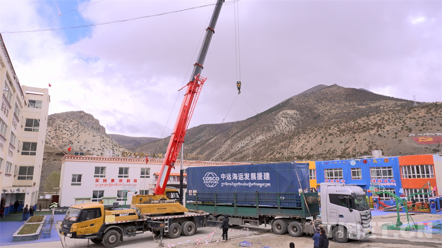 近日,中遠海運集團2024年援建的西藏自治區昌都市洛隆縣臘久鄉第一小學集裝箱食堂和G349洛隆段集裝箱文旅驛站,用20臺大卡車裝車,從遼寧省錦州市出發,經國道G349等道路,連續奔波近4000公里,順利運抵洛隆。
