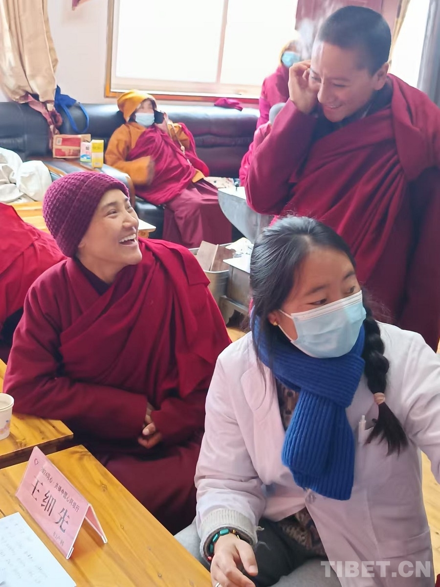 中國西藏網訊 10月26日,同心·共鑄中國心公益活動義診專家組選派三名女專家走進四川省阿壩藏族羌族自治州紅原縣瓦切鎮如意空行寺,為覺姆義診并開展健康科普講座。