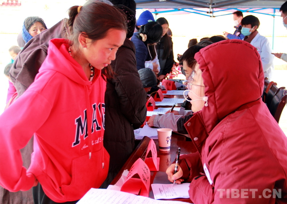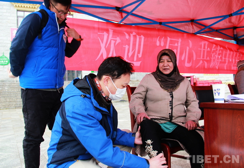 高原的大雪天,在室外即便來回走動也感覺格外寒冷。前來問診的患者絡(luò)繹不絕,醫(yī)務(wù)志愿者們堅守崗位,身披雪花,腳踩積雪,在翻譯的幫助下不停接診,一坐就是大半天。有的醫(yī)務(wù)志愿者專心接診,渾然不知衣服上已經(jīng)積雪;有的醫(yī)務(wù)志愿者發(fā)現(xiàn)患者不太理解疾病的分科,就同時擔(dān)起了分診工作;有的醫(yī)務(wù)志愿者自身高反強烈,吸著氧也要堅持接診……