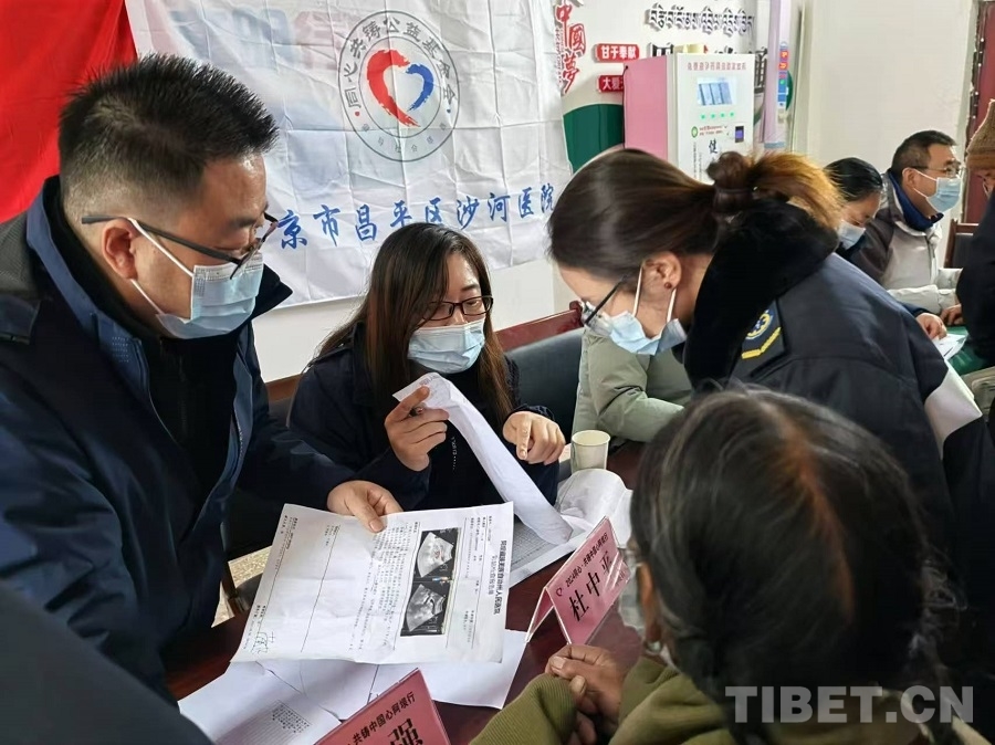 圖為北京市昌平區沙河醫院黨委書記李瑞強,航空總醫院路金玲主任,北京復興醫院唐煜主任為當地百姓送去慰問物資 攝影:張曉雪