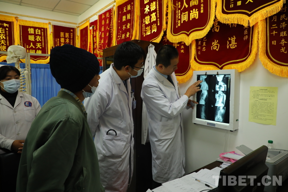 在骨科科室,同樣人潮涌動。骨科疾病是當地百姓的一大困擾。科室內很多人圍著一位患者,他叫扎西能周,今年21歲,是阿壩職業學院的學生。醫生告訴他脊柱側彎已達60度,如果做手術,將得到基金會的全力支持。扎西能周表示,這對他來說是一個福音,他可以重新開始新的生活。這一切都是為了阿壩人民的健康,在這里得到了完美的詮釋。
