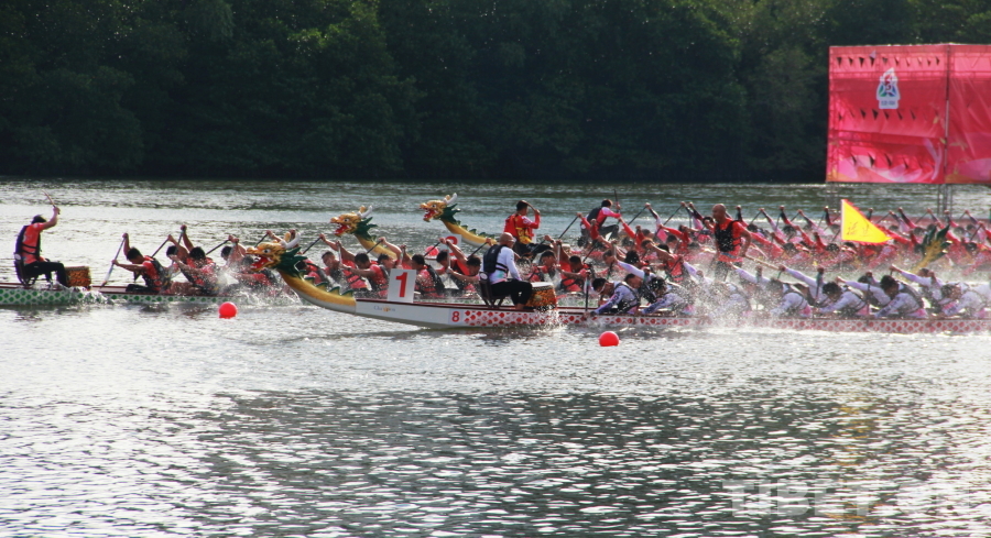 圖為第十二屆全國少數民族傳統體育運動會龍舟項目中的海南隊 攝影:劉莉