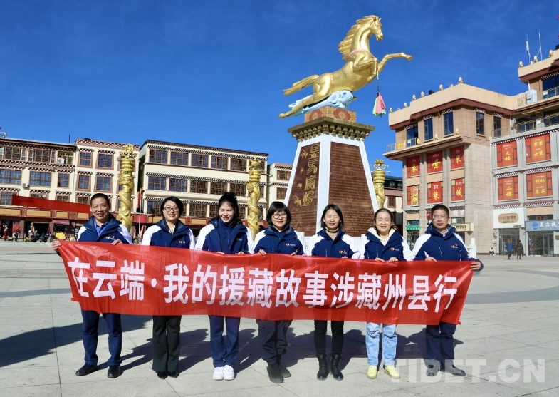 圖為宣講團援藏干部代表在色達縣金馬廣場合影留念 攝影:龍真多吉
