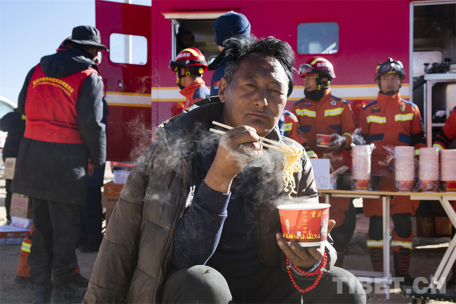 “近期,來自各地的救援物資紛紛運抵災區,每一戶受災群眾家中都有較為充足的物資保障。但是在實際工作中我們發現,由于每家每戶受災情況不同,并不是每一戶家中都具備生火做飯的能力。為了讓每位受災群眾都能夠吃上熱乎乎的飯菜,我們用自己攜帶的保障物資,為包括措昂村在內的四個村莊提供伙食保障?!编嵏嬖V記者,從1月8日起,山南市消防救援支隊便開始向群眾提供熱乎的三餐,這是一項根據災區情況而開展的“臨時任務”。