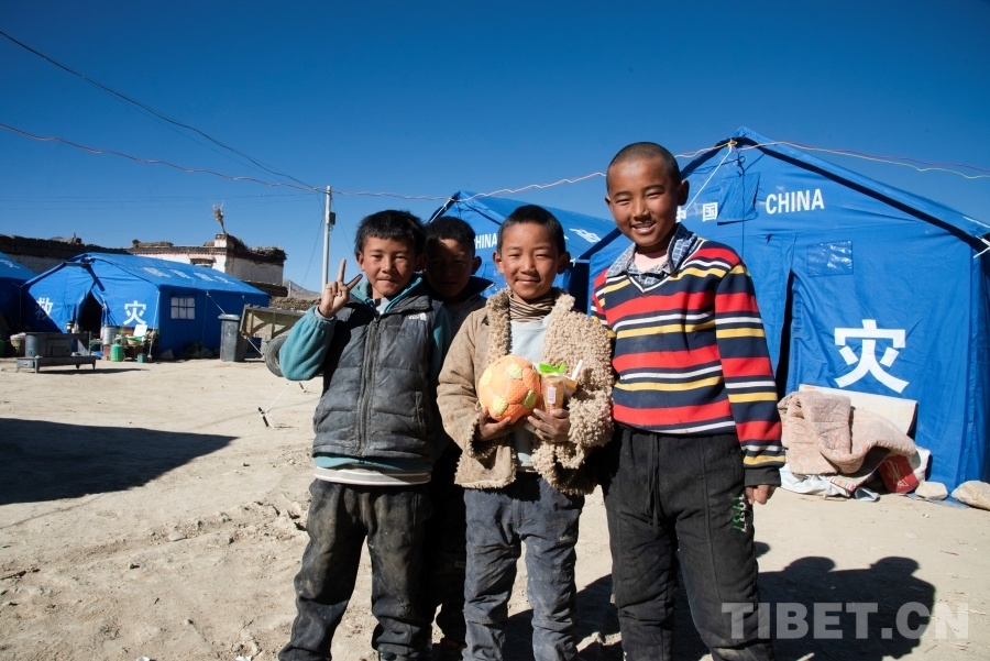 “我們家里的房子全部倒塌了,但好在沒人受傷。”“吃飯、睡覺都沒有任何問題,就是帳篷里還沒有通電。”“如果能夠許一個愿望,我希望這場地震沒有發(fā)生。”措昂村的小男孩們將腳下的足球“按下暫停”,向記者講述著他們受災(zāi)三天的生活情況。三名穿著紅馬甲的救災(zāi)人員走進(jìn)安置點(diǎn),小男孩們迅速將他們圍了起來。
