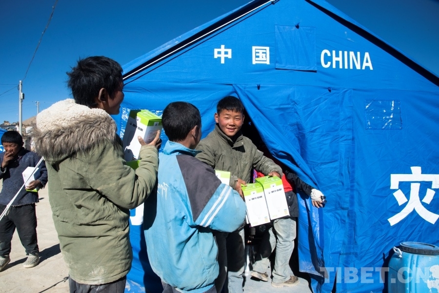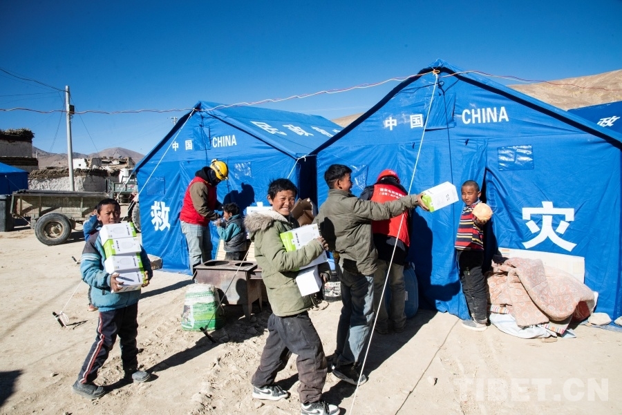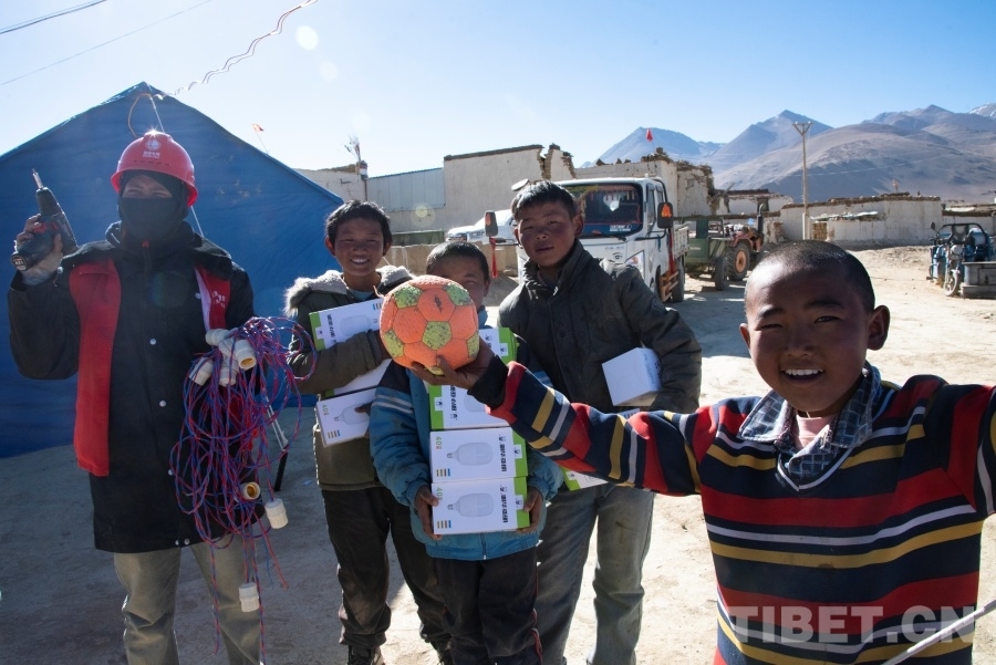 “來,你們拿著這些燈泡跟著我!”在次仁旦增和其他兩位組員的組織下,小男孩們化身為措昂村受災(zāi)安置點(diǎn)的小小志愿者,簇?fù)碇鴱倪@些從山南前來支援的國家電網(wǎng)工作人員走進(jìn)一間間帳篷,為站在高處正在架設(shè)電線的叔叔們遞上工具和燈泡。
