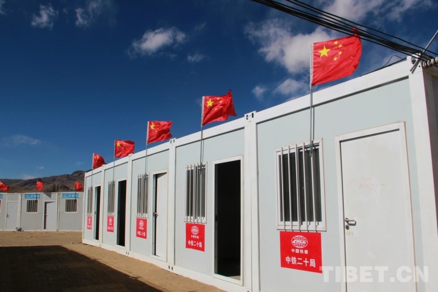 圖為工作人員正在長所鄉森嘎村卸新運到的板房 攝影:劉莉