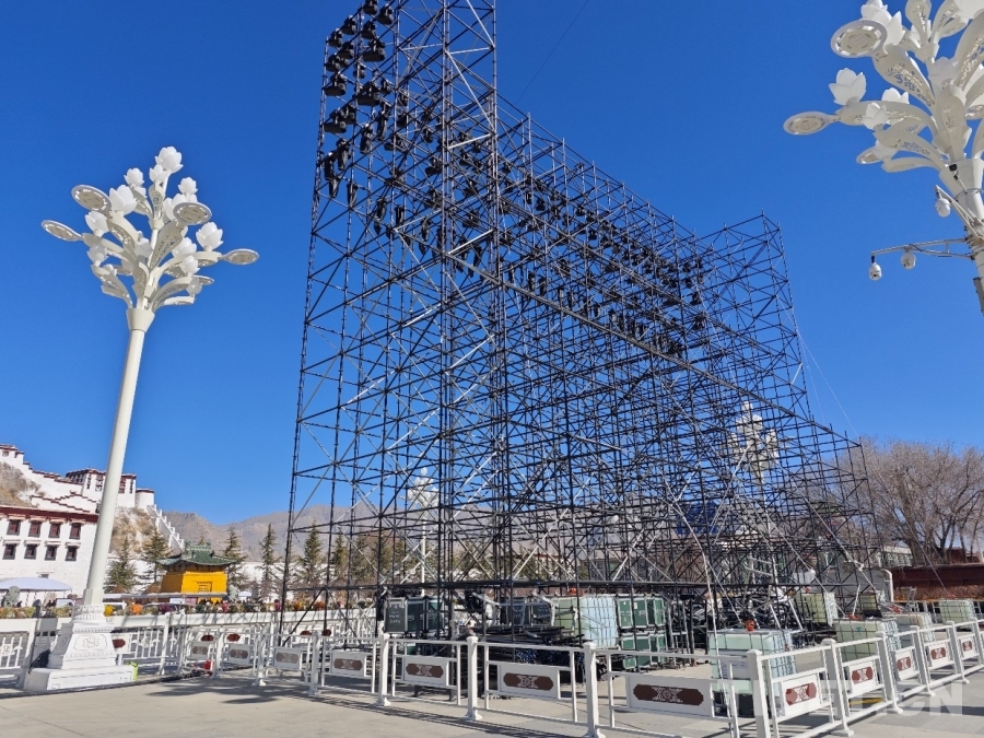 圖為布達拉宮廣場的春晚分會場布置現(xiàn)場 攝影:趙婧茹
