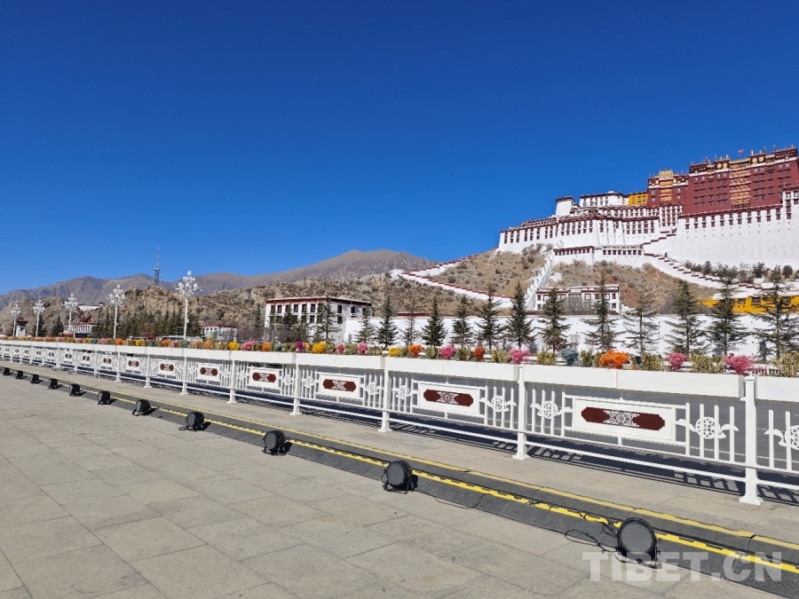 圖為布達拉宮前的燈光設備 攝影:趙婧茹