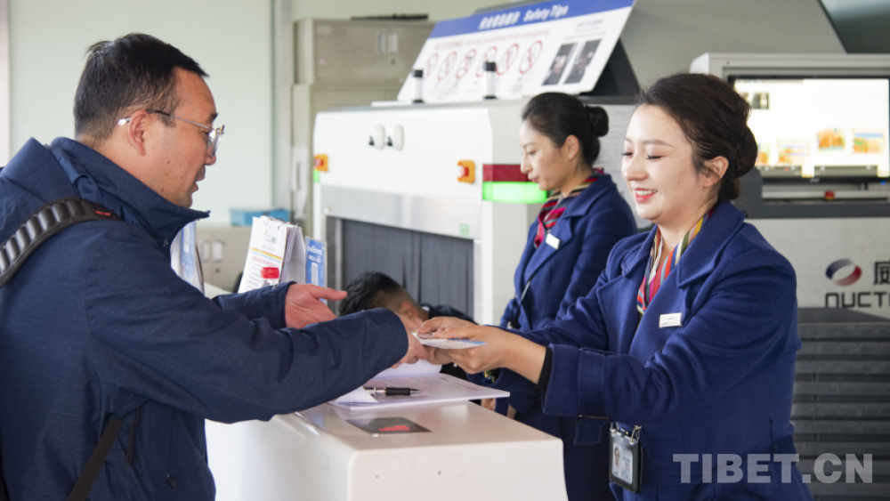“您好,先生,請問您乘坐藏航哪趟航班?請出示您的身份證。您有托運(yùn)行李嗎?托運(yùn)行李中有鋰電池、充電寶嗎?這些是不能托運(yùn)的,只能隨身攜帶。請拿好您的登機(jī)牌。再見,祝您歸途愉快!”1月25日,記者在拉薩貢嘎國際機(jī)場T3航站樓G島柜臺,見到了西藏航空公司拉薩基地值機(jī)服務(wù)隊隊長次仁卓嘎。