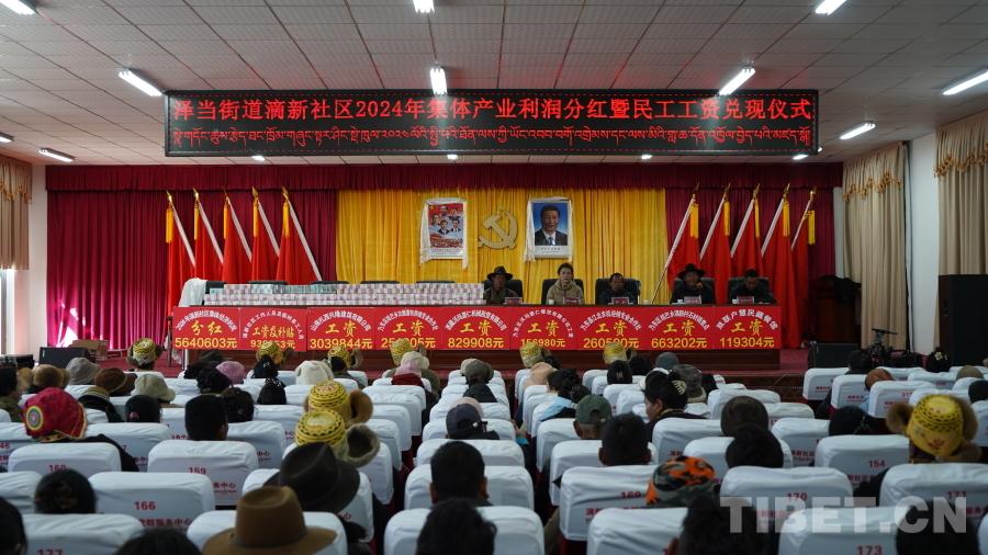 圖為西藏自治區山南市澤當街道滴新社區2024年集體產業利潤分紅暨民工工資兌現儀式現場