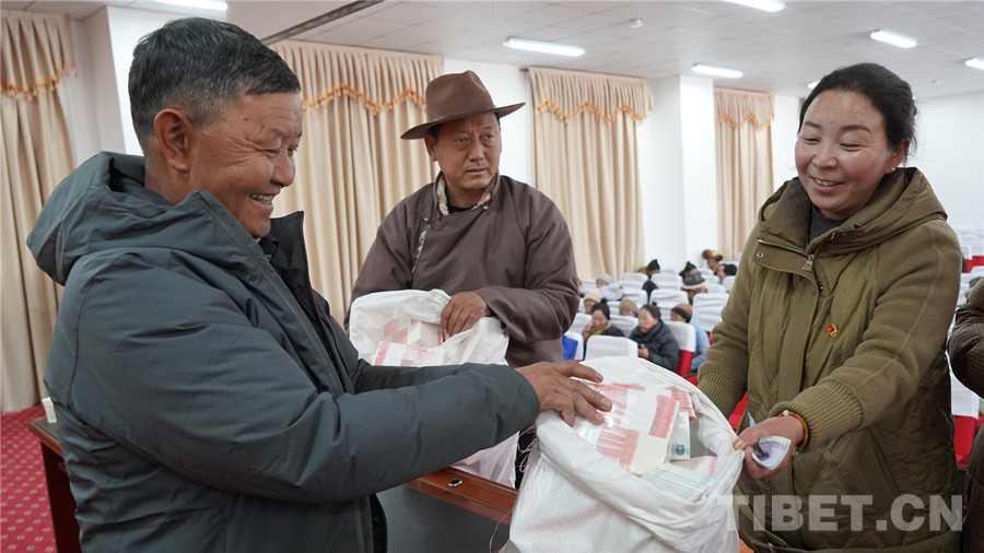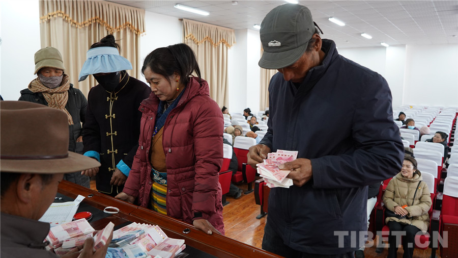 中國西藏網訊 2月11日,在西藏自治區山南市澤當街道辦事處滴新社區居民委員會會議室里,一片人聲鼎沸、熱火朝天的景象,2024年滴新集體產業利潤分紅暨民工工資兌現儀式正在這里舉行。