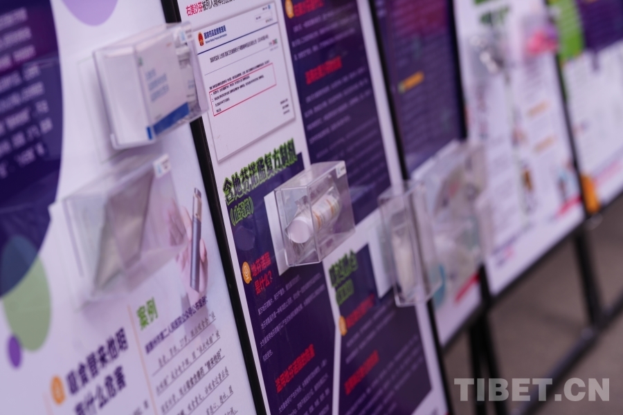 圖為活動現場,禁毒辦民警向群眾普及防毒禁毒知識。攝影:德吉卓瑪