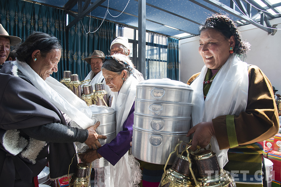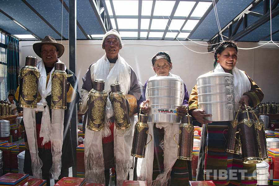 “因受地震的影響,今年的分紅儀式與以往相比簡單一些。我們村兩委經過商議,決定用今年的村集體收入為每戶購置多功能蒸鍋、銅壺等作為‘分紅’。一方面,因為大家現在都在安置板房里生活,這些物品對于村民來說實用性更強;另一方面,銅壺也有一定的裝飾作用,為村民簡單的板房內增添了一份像樣的‘家具’?!贝妩h支部書記旺加布說。