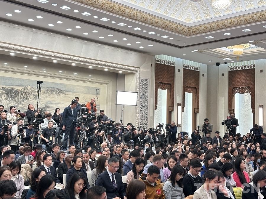 圖為中央廣播電視總臺記者提問 攝影:楊眉笑