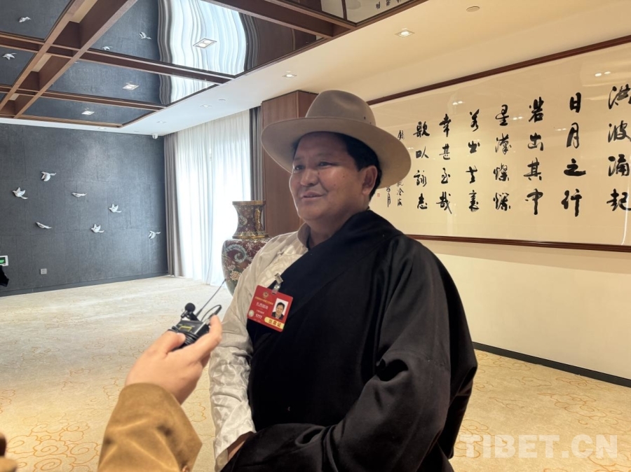 圖為兩會(huì)期間,扎西頓珠接受中國西藏網(wǎng)記者采訪
