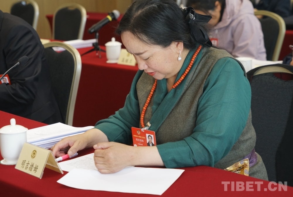 圖為明吉措姆在全國政協十四屆三次會議民族界小組會議上發言攝影:楊眉笑